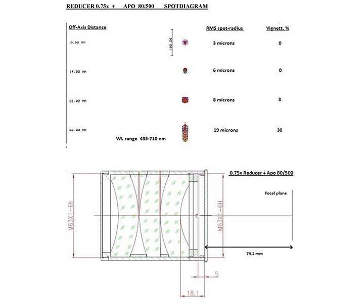 Der Esprit120 und 150 haben genug backfocus, um den Riccardi Reducer einfach hinter dem OAZ montieren zu können: M74M63